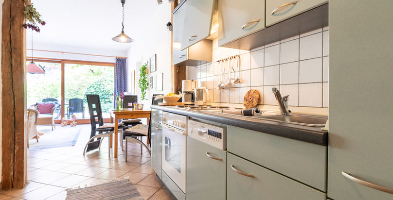 Die Wohnung ist modern und freundlich eingerichtet, mit gut ausgestatteter Küchenzeile, dem Flur, der Garderobe, der Dusche/WC und dem Eltern- und Kinderschlafzimmer.